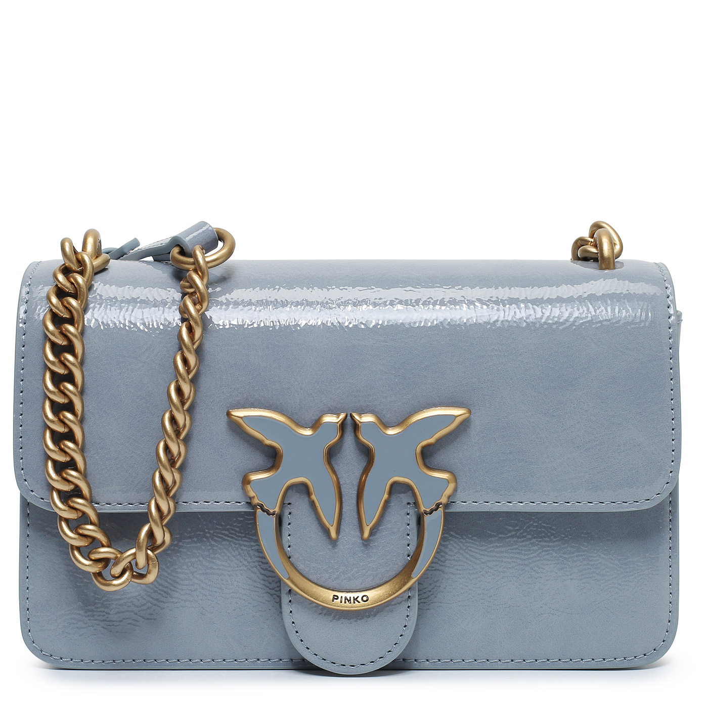 Сумка через плечо с цепочкой Pinko Love One 103335-A1UV/E57Q_light blue - 2000558612593 голубой полиуретан 21 x 12,5 x 7,5 Цена 28730 руб. купить в интернет-магазине PanChemodan.ru в Тольятти